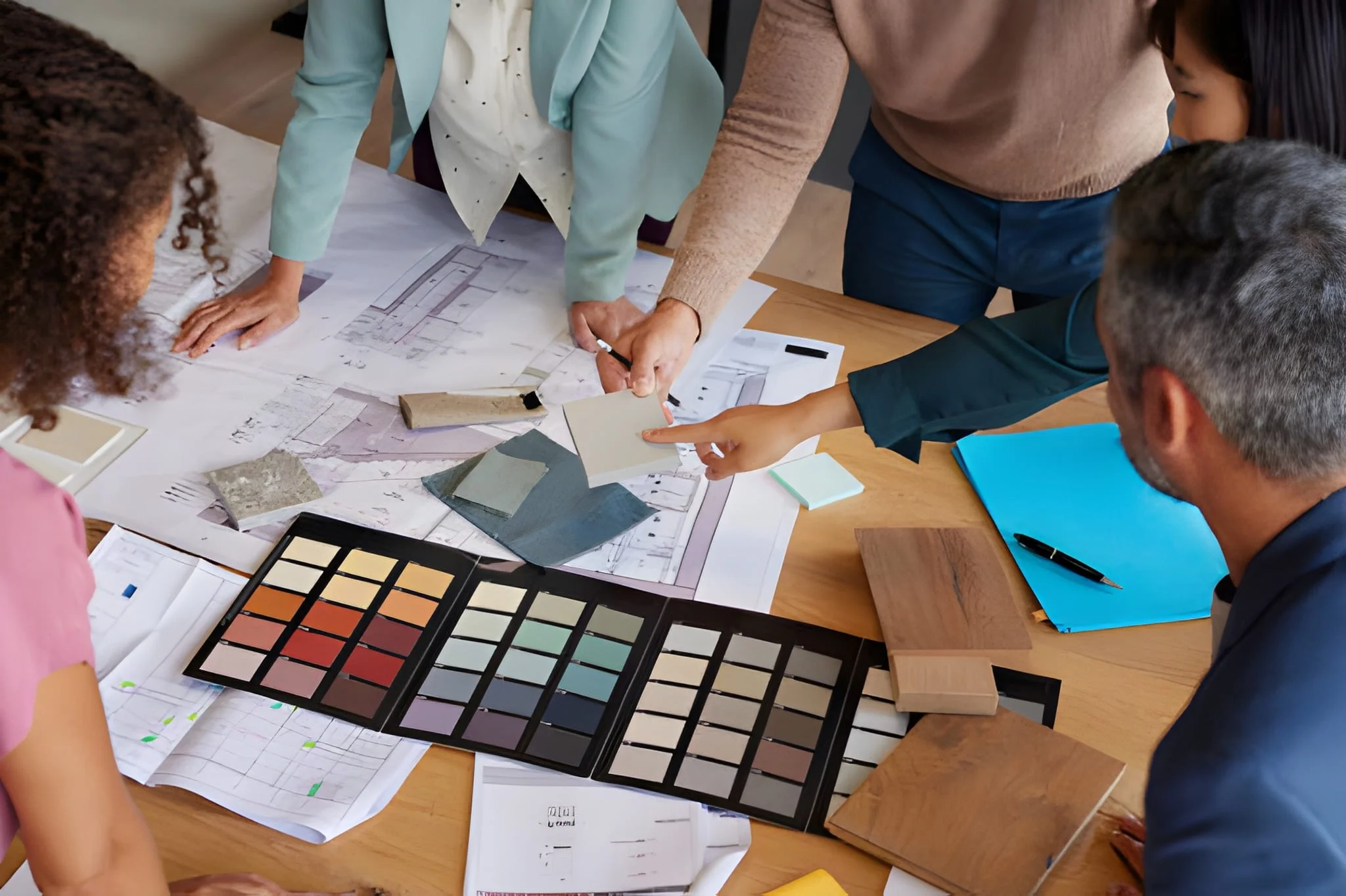 اختيار الألوان والتشطيبات وخيارات الإضاءة.